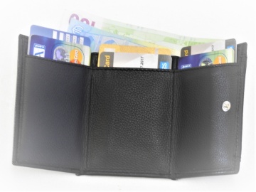 Mala denarnica z enim predalom za denar, trije predalčki za 6 kartice, ter predalček za drobiž. Denarnica je res mala dimenzije 7cm x9,5 cm x 1,5 cm in je primerna za nošenje v sprednjem žepu, saj je mala in tanka, hkrati pa prostorna, saj gre notri vse, kar potrebujete za vsak dan. Dimenzije 7cm x 10 cm