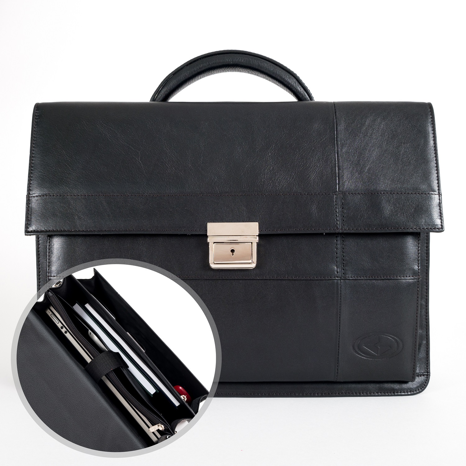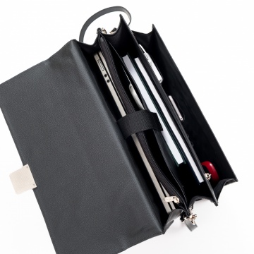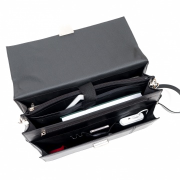 Poslovna torba 4107 je izdelana iz najkvalitetnejšega rastlinsko strojenega govejega usnja. Odlikuje jo lep modern dizajn, z izredno lepo in funkcionalno dodelano notranjostjo. Ima dva velika predala v katera lahko daste 15,7 inčni prenosnik in dokumente. Zraven sta še dva predala na zadrgo, predal za tablico in sprednji predal v katerega lahko spravite mobilni telefon,power banc, miško,ter pisala. Torba jima dodan tudi snemljiv pas za nošenje preko rame.