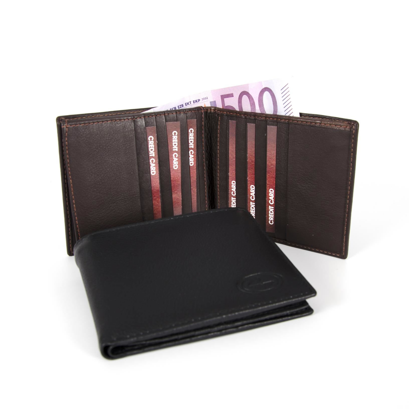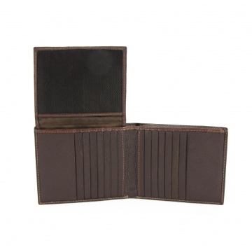 Ekstremno prostorna moška denarnica iz govejega usnja, ponuja 21 predalov za kartice, 3 dodatne predale za dokumente, preostale kartice ali vizitke. Denarnica nima predala za kovance zato je izredno tanka.