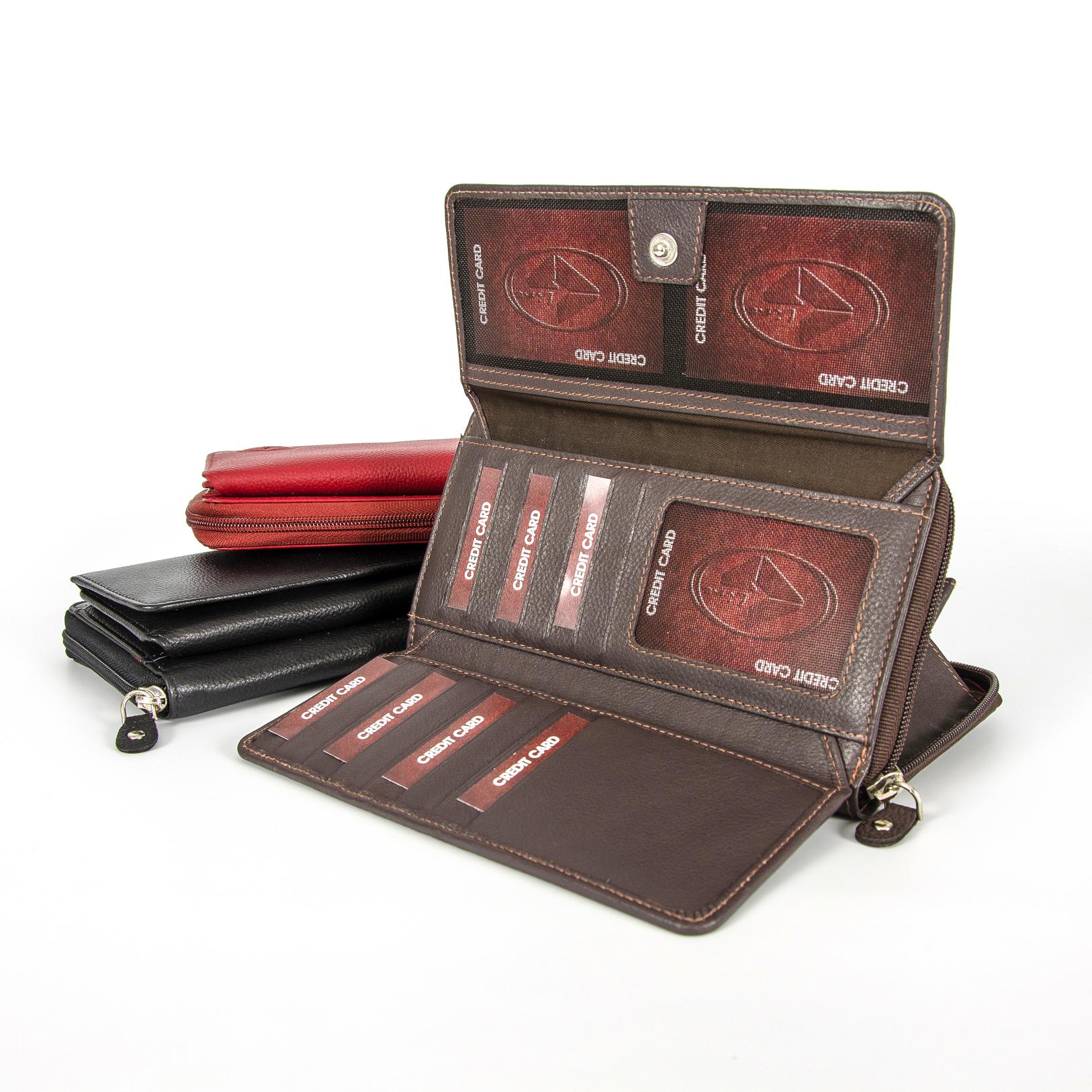 Simpatična in najprostornejša ženska denarnica se odpira na zadrgo in vas razvaja s skupno 33 predalčki. Od tega jih je 26 v velikosti kartic, 5 dodatnih predalov za dokumente ali odvečne kartice. Kovance spravite v poseben predal na zadrgo. Denarnica je narejena iz prijetnega mehkega usnja.